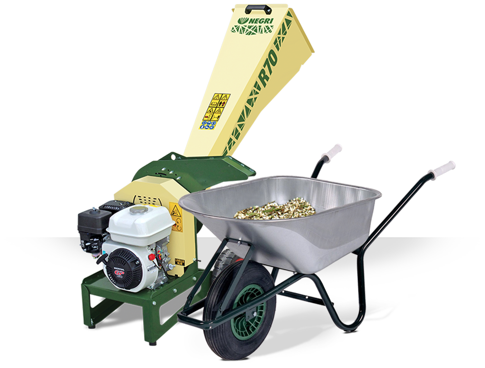 Biotrituratore Negri R70 con motore Motore Loncin da 7 HP: potente, affidabile e compatto. Perfetto per giardinaggio, agricoltura e gestione scarti verdi.