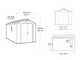 La ventilazione integrata mantiene un ambiente ideale per la conservazione degli attrezzi, e il pavimento rialzato supporta anche gli oggetti più pesanti, come tosaerba, barbecue o grandi mobili, garantendo una base solida e duratura. Il soffitto alto permette una libertà di movimento eccezionale, essenziale per gestire e organizzare i grandi attrezzi.