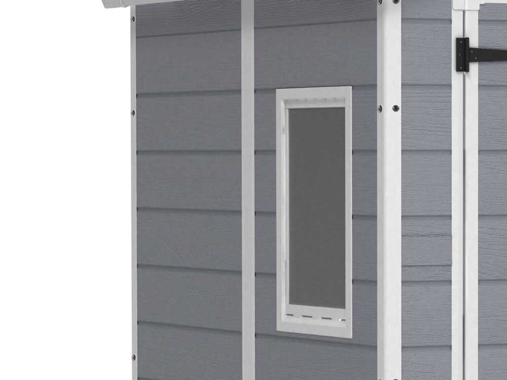 Dotata di doppia porta di ingresso facilita il rimessaggio di attrezzi, mobili o qualsiasi altro oggetto da giardino, anche di grandi dimensioni. I fori di aerazione favoriscono una buona circolazione dell’aria, prevengono la formazione di muffa, e la finestra garantisce un’eccellente illuminazione interna, evitando l’utilizzo durante il giorno dell’ illuminazione artificiale.